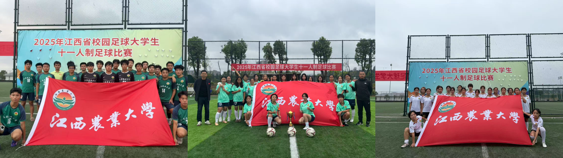 10月17日至23日,由江西省教育厅主办的2025年江西省大学生足球赛在赣州市定南县顺利举行。我校由军体部周衍超、金勇伟两位老师带队参赛。最终,我校荣获本科女子乙组冠军、男子乙组亚军,学校获评体育道德风尚奖。
