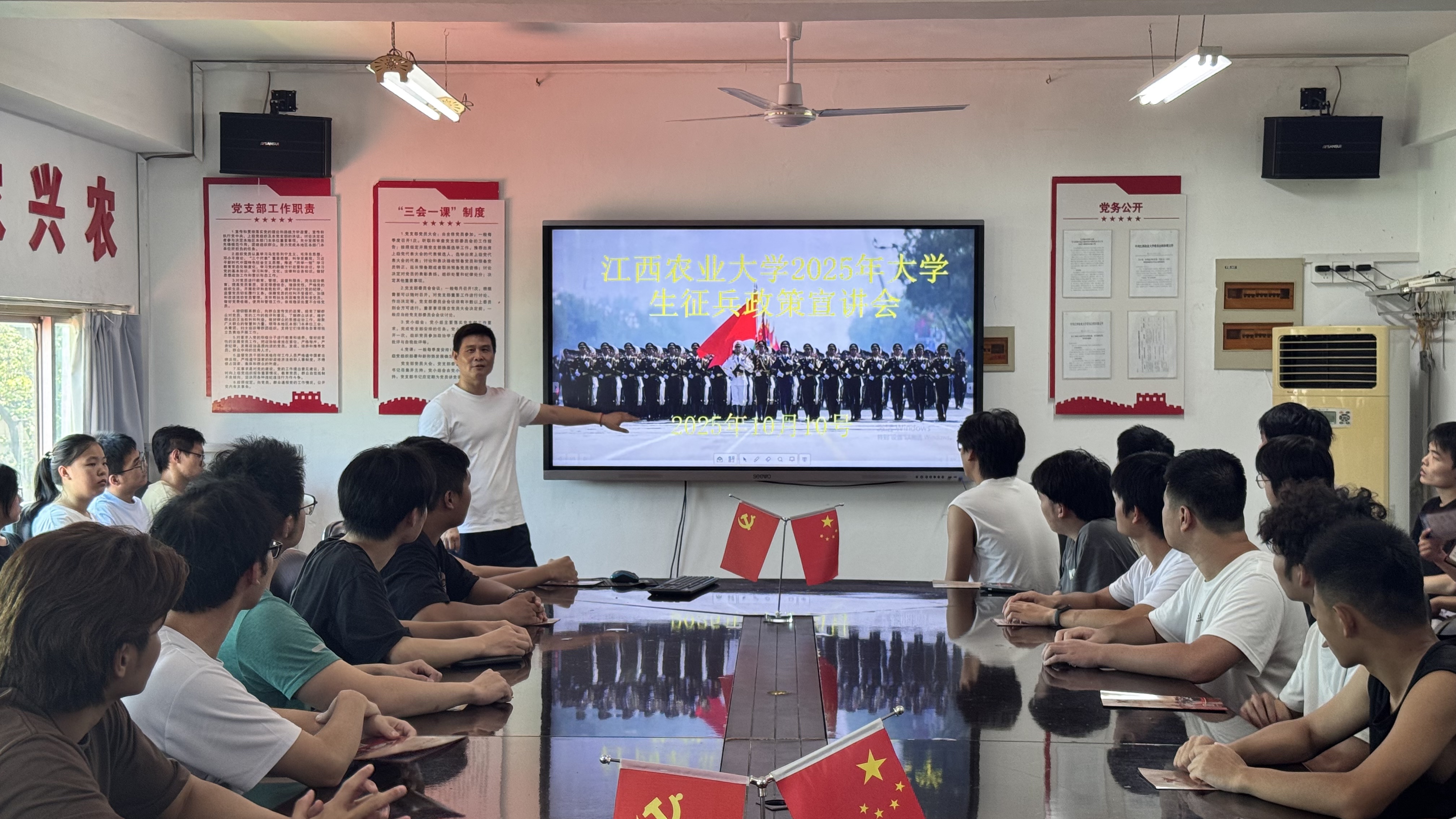 2025年10月10日,武装部在三楼会议室以线上线下同步的方式,召开2026年江西农业大学大学生预征对象参军入伍政策宣传咨询会,会议由武装部副部长陈奎老师主持。