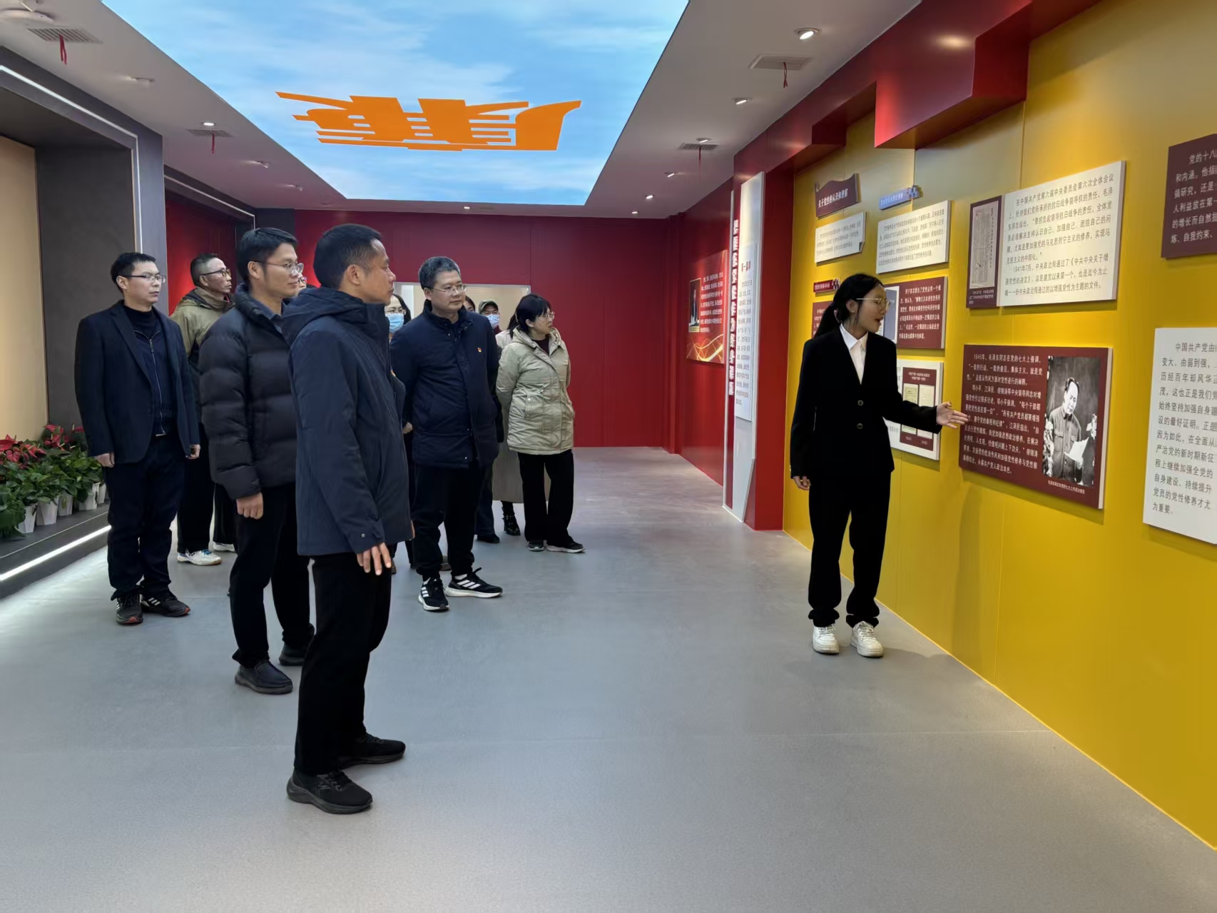 活动中,党员干部在讲解员引导下,一同参观了学校“金扁担”党建创新中心。该中心由党建馆、党风廉政馆和“金扁担”大讲堂组成。在党风廉政馆,大家认真观看警示教育内容,接受了一次深刻的思想洗礼,进一步筑牢了拒腐防变的思想道德防线。