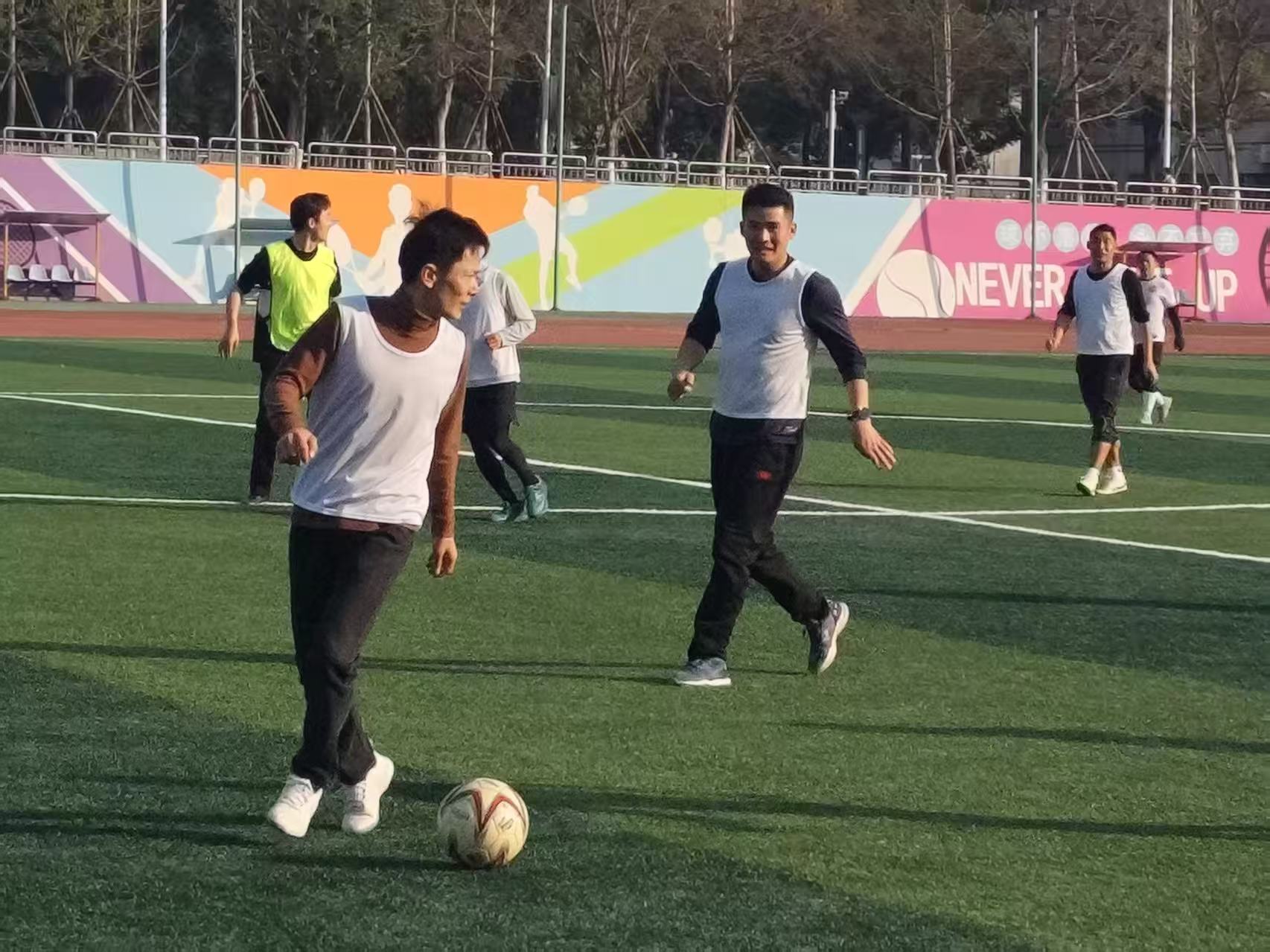 1月9日下午,军体部教职工在北区足球场开展2026年“迎新春”教职工足球赛。